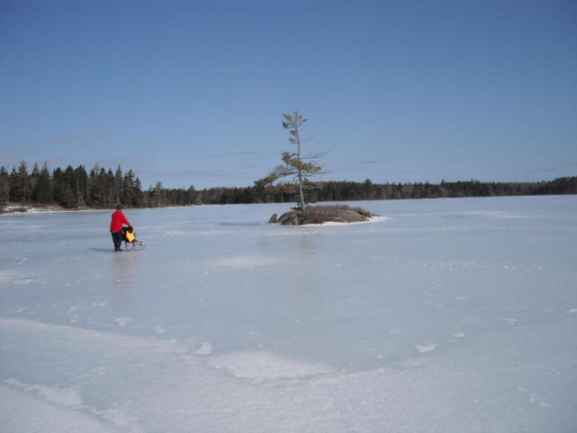 kicksled around whole lake, some skating on smoother ice- 42km
